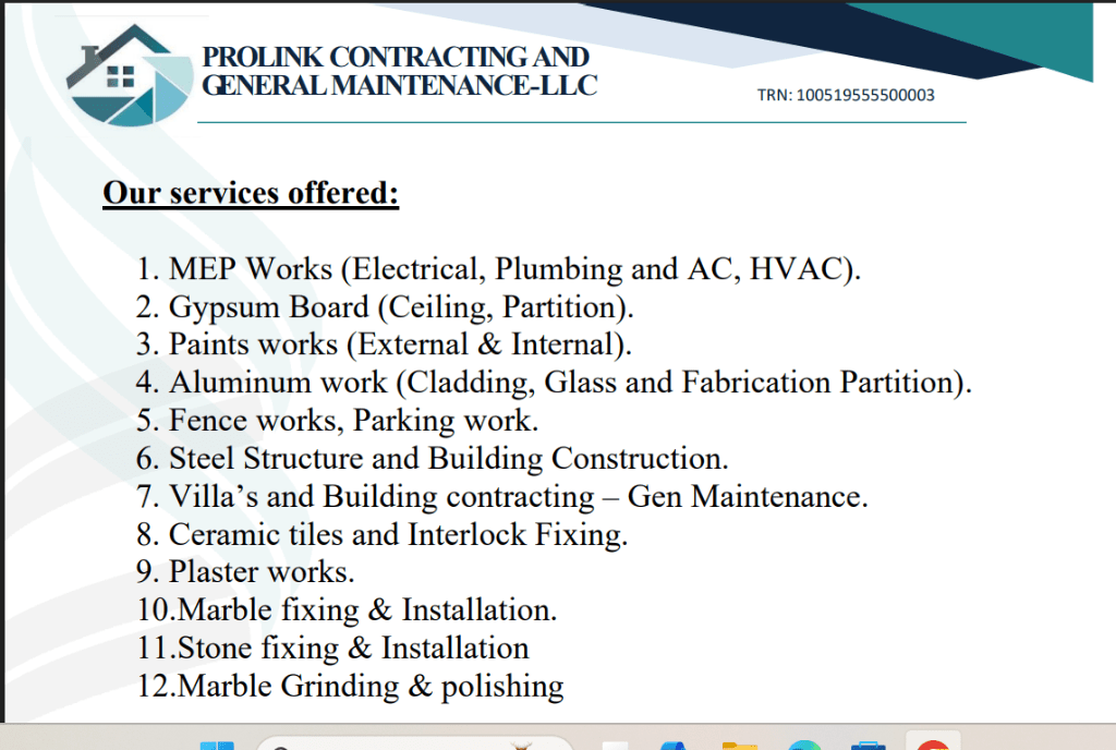 We are doing all kind of Fence work and Parking shade work. if you have this kinds of work, then call me please Prolink Contracting and General Maintenance LLC