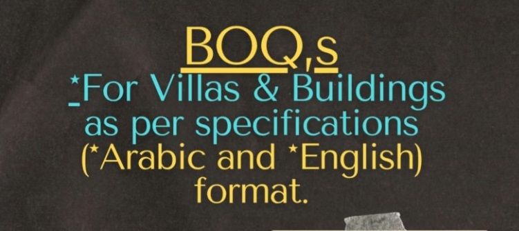 The Bill of Quantities (BOQ) has been meticulously prepared in English and Arabic to define the full scope of works for The Villa and Building. The quantity calculations were performed using industry - standard digital tools, specifically PlanSwift and AutoCAD, and compiled in Microsoft Excel