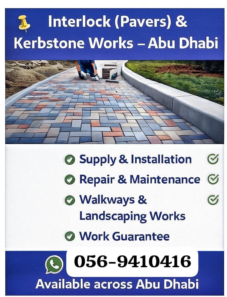 Interlock (pasko) Kerbstone Works - Abu Dhabi We provide high - quality interlock paving and kerbstone installation with professional execution, competitive pricing, and on - time delivery. Supply & Installation Repair & Maintenance Walkways & Landscaping Works Work Guarantee Contact us Available across Abu Dhabi