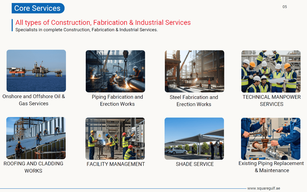 We are a leading contracting company specializing in mechanical and steel works, offering steel fabrication and erection, piping, installation, Industrial & commercial maintenance, and comprehensive engineering services across the UAE