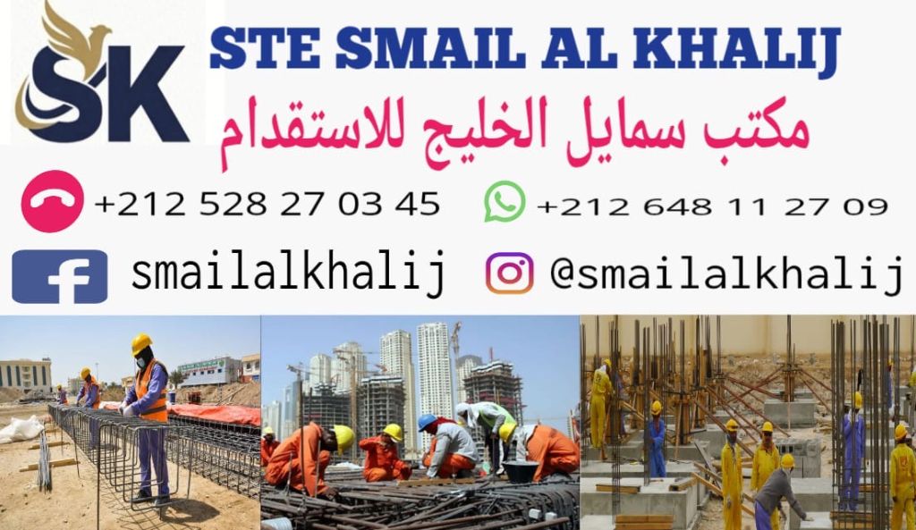 نحن مكتب سمايل الخليج للاستقدام يوفر لكم من المغرب عمال مقاولات وأوراش من جميع الحرفيبن والمهنيين / جباصين / حدادين مسلح ونجارين مسلح / فنيين ألومينيوم / سباكين / معلمين صيرامبك ورخام / وجميع الحرفيبن بكفاءات عالية / للطلب يرجى التواصل معنا عبر أرقامنا