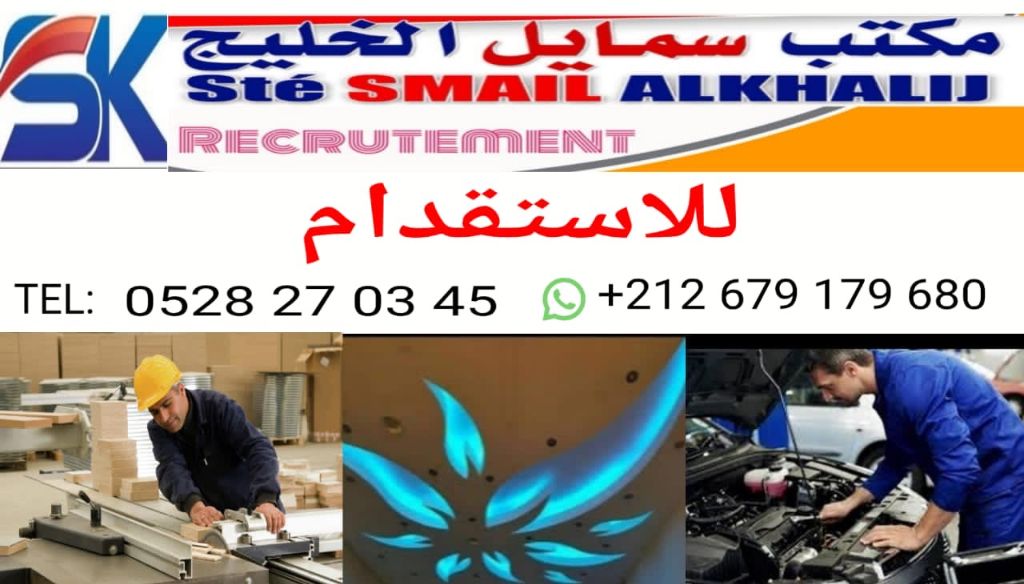نحن مكتب سمايل الخليج للاستقدام نوفر لكم من المغرب حرفيين ومهنيين من جميع الفئات / جارين / جباصين / صباغين سيارات ومباني / حدادين أبواب وشبابيك / ميكانبك وكهربائي. سيارات وشاحنات وجميع العمالة الحرفية والمهنية / للطلب يرجى التواصل معنا عبر أرقامنا