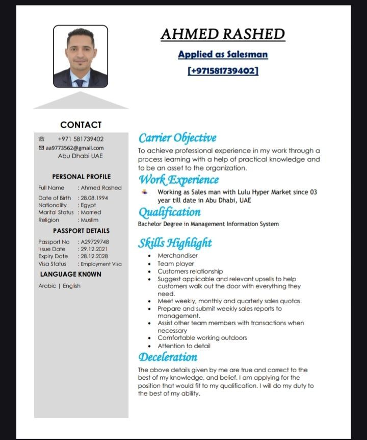 أطلب الحصول علي وظيفة أنا لدي خبرة في مجال المبيعات 3 سنوات
