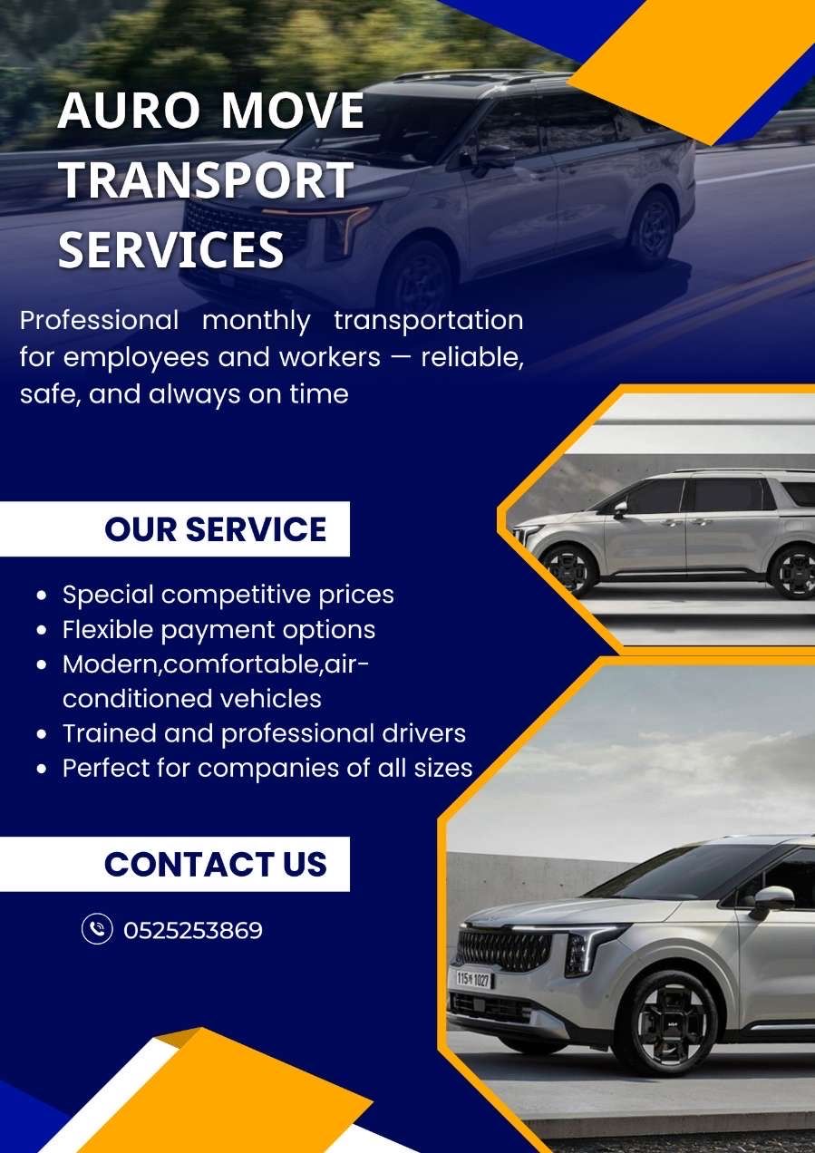 شركة أوروا موف للنقل - تنقلاتك أصبحت أسهل نقدم خدمات توصيل موثوقة لجميع احتياجتك توصيل الموظفين (اشتراك شهري) رحلات من والى المطار - مشاوير بين المدن (من أبوظبي لكافة الامارات) تنقلات داخلية في أبوظبي وضواحيها لرحلات مريحة وآمنة، تواصل معنا الآن للحجز والاستفسار