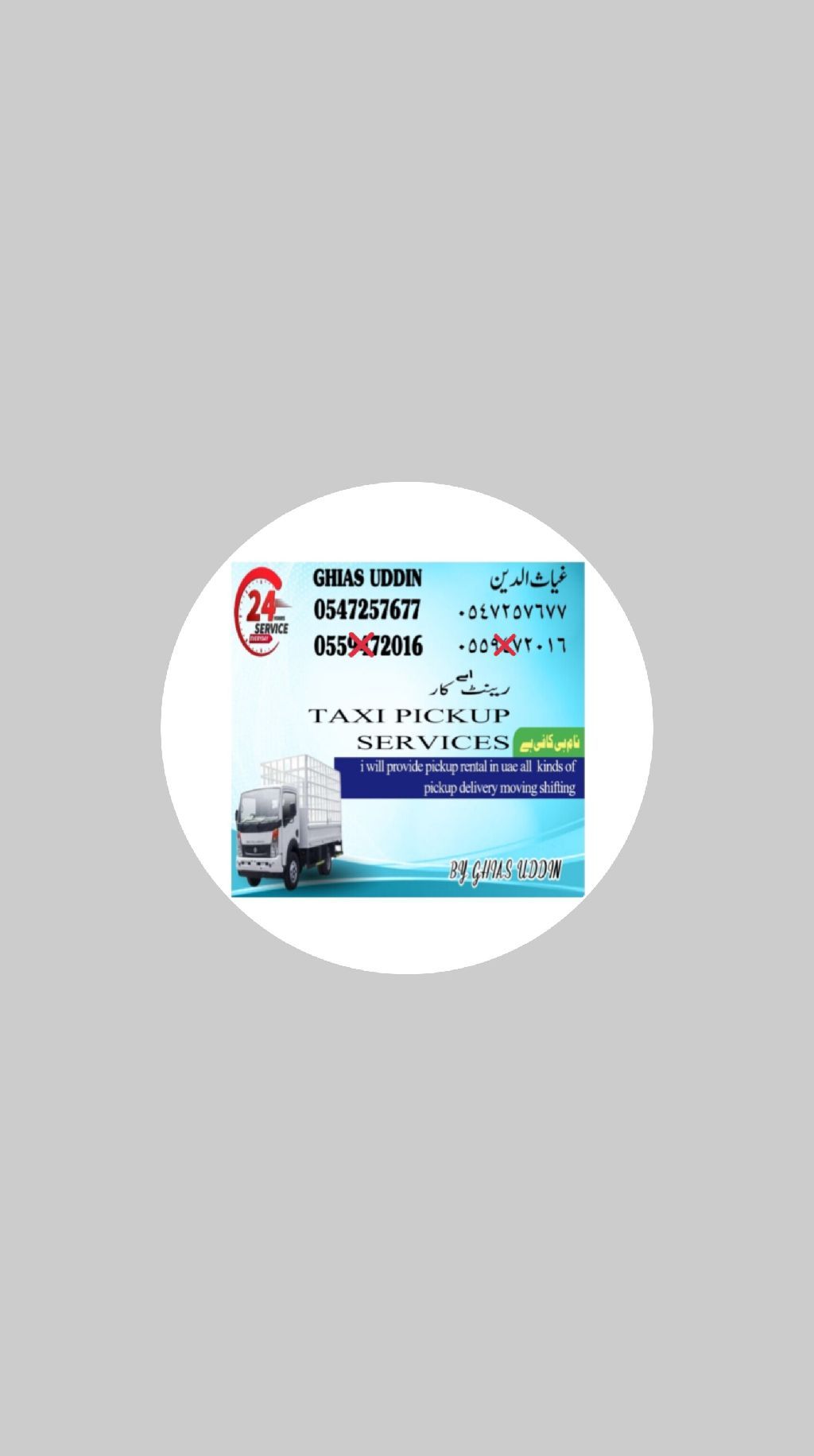 I have 3 ton pickup for taxi anywhere in Emirates, well known all location in UAE I have experience UAE 9 years, and speek Arabic, Urdu, English and pushtu, contact me