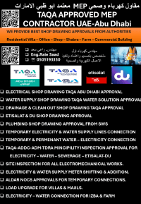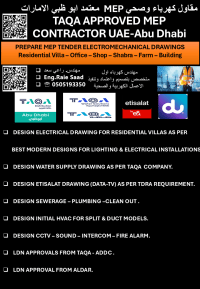 Excellent electrical engineer in Abu Dhabi available to design and shop drawing approvals from addc. pefect in site inspections and submission to addc for all villas and buildings. I am mep contractor for all installations maintenance and site works. best electrical contractor in Abu Dhabi TAQA Distribution