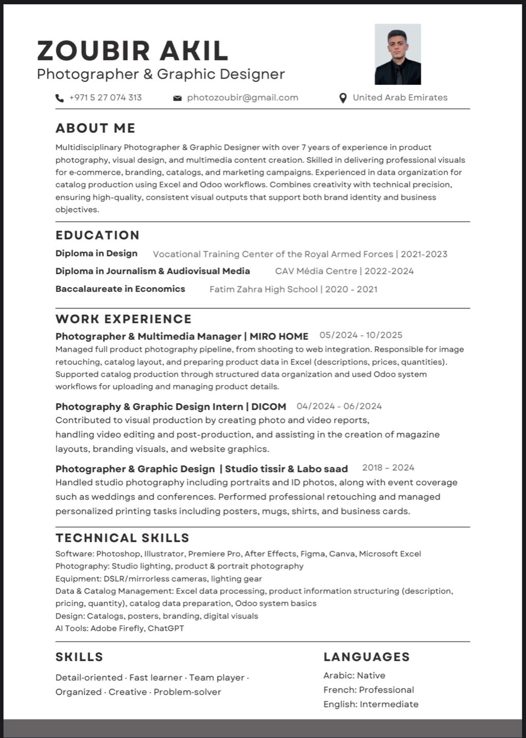 I am photographer and videographer and I have experience end eduction for work in professional conditions. I am available for your interview