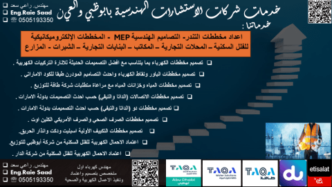 مهندس كهرباء معتمد لاعتماد مخططات الكهرباء للفلل السكنية واستكمال أعمال التفتيشات والتسليمات النهائية للخدمات الأفضل بامارة أبوظبي