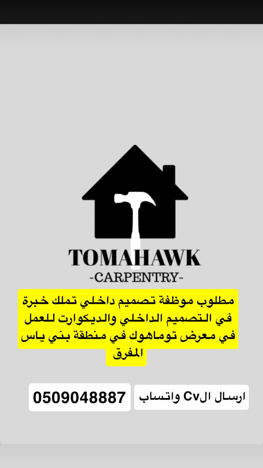 مطلوب مهندسة تصميم داخلي وديكورات للعمل في معرض توماهوك في منطقة بني ياس المفرق