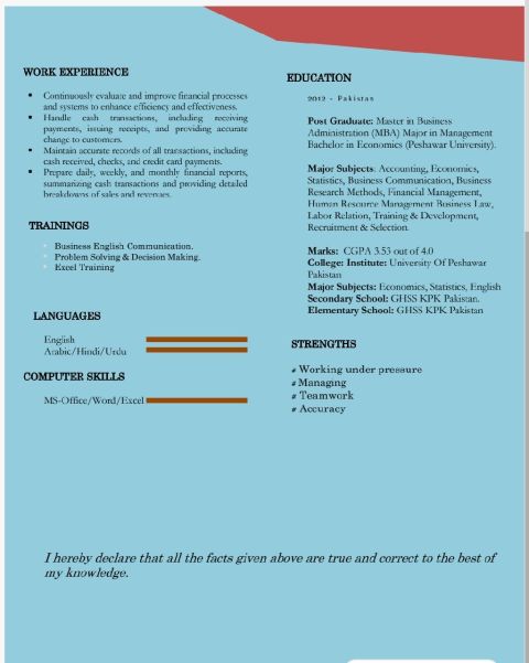 My name is Fazal Rehman My Qualification is MBA (Master in business administration) I have 11 years Experience in UAE in multitasking jobs as Documents controller, administration, Management, Marketing etc. if any requirements feel free to contact me and attached is my Resume