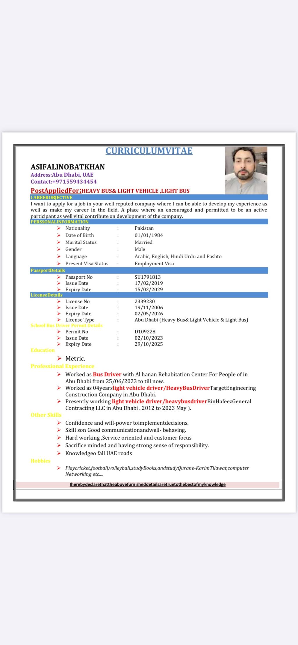 يطلب عمل سائق في الإمارات