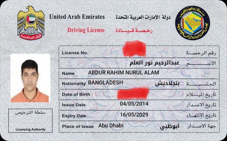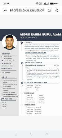 أنا عبد الرحيم، من بنغلادش أعيش في أبوظبي لدي خبرة عشر سنوات في القيادة لدي رخصة قيادة سيارة ورخصة قيادة دراجة نارية أيضا أجيد اللغتين العربية والهندية والانجليزية