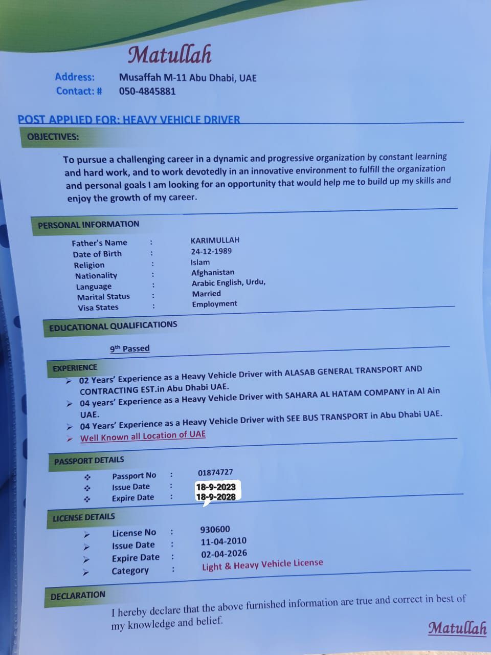 أنا مطيع الله من أفغانستان سائق سيارة ريلا في الامارات العربية المتحدة خبرة 15 عاما في جميع الامارات لذا يجب على الجميع الاتصال بي