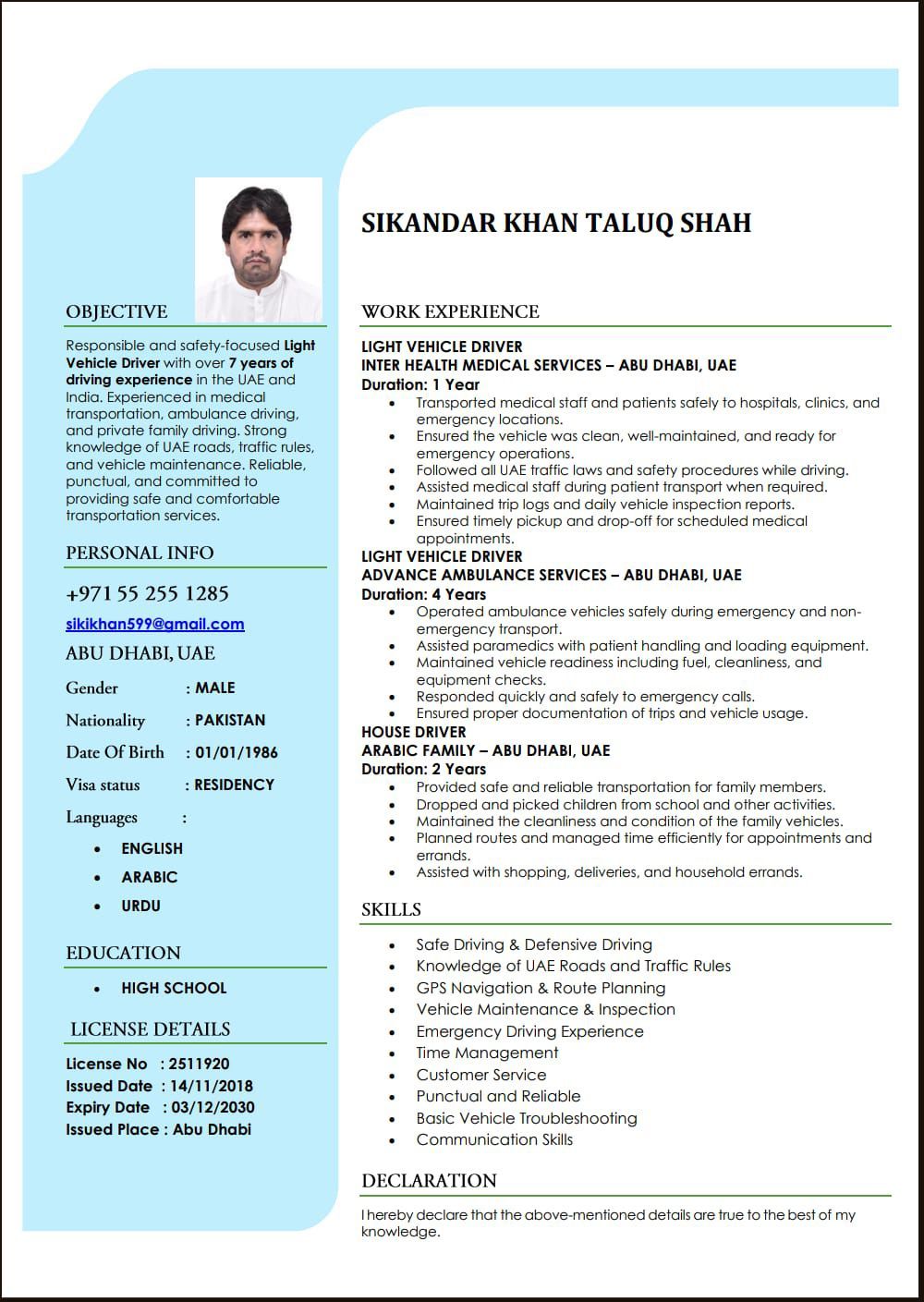 I am Sikandar Khan From Pakistan Currently Located in Abu Dhabi City UAE. I am Looking For A Driving Job Because My Recent Company Has Been Shutdown And Move Out From UAE. I have 6 Years Of Experience as A Driver. I am Well Known Of All UAE Traffic Rules And Regulations. I have a Clear Track Record as well. I am Looking Forward For A Kind Response