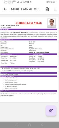 15 years professional experience in driving a variety of luxury cars. As a Personal Family Driver, Furthermore, I have excellent written and verbal communication skills Arabic Baloushi and hindi, Urdu. cash Deposit Cheque deposit, withdraw cash I am certain in my ability to work well for you as a driver and would like to explore this opportunity further by meeting with you in person