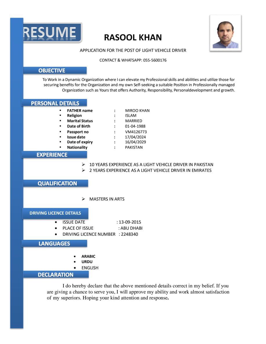 Lm Rasool khan from Pakistani need a job I have light vehicle license I have three years driving experience in UAE