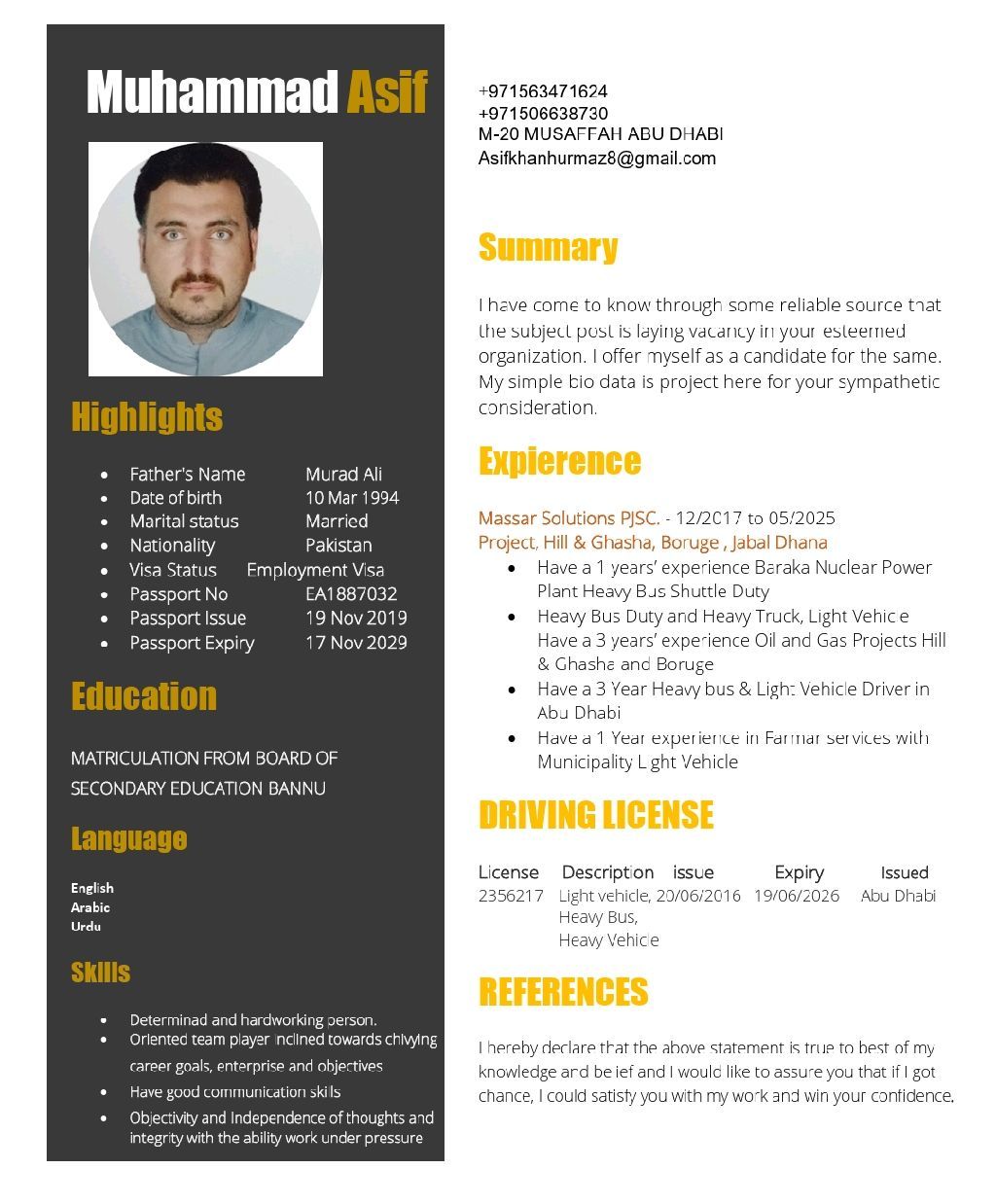 I have 3 License light vehicle and heavy vehicle and heavy bus vehicle I have 9 year experience in UAE