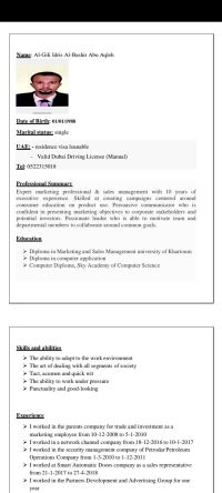 معي لسين اماراتي ساري مانيوال خبرة داخل الدولة أكثر من أربعه سنة بدور على وظيفة مناسبة اشتغلت سائق في مطعم المير للمأكولات الشعبية ومطعم باب المندب سائق أيضا