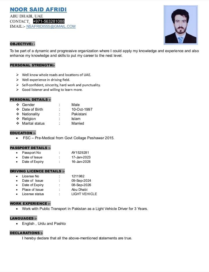 I have light vehicle license looking for a light vehicle job one year experience in Dubai