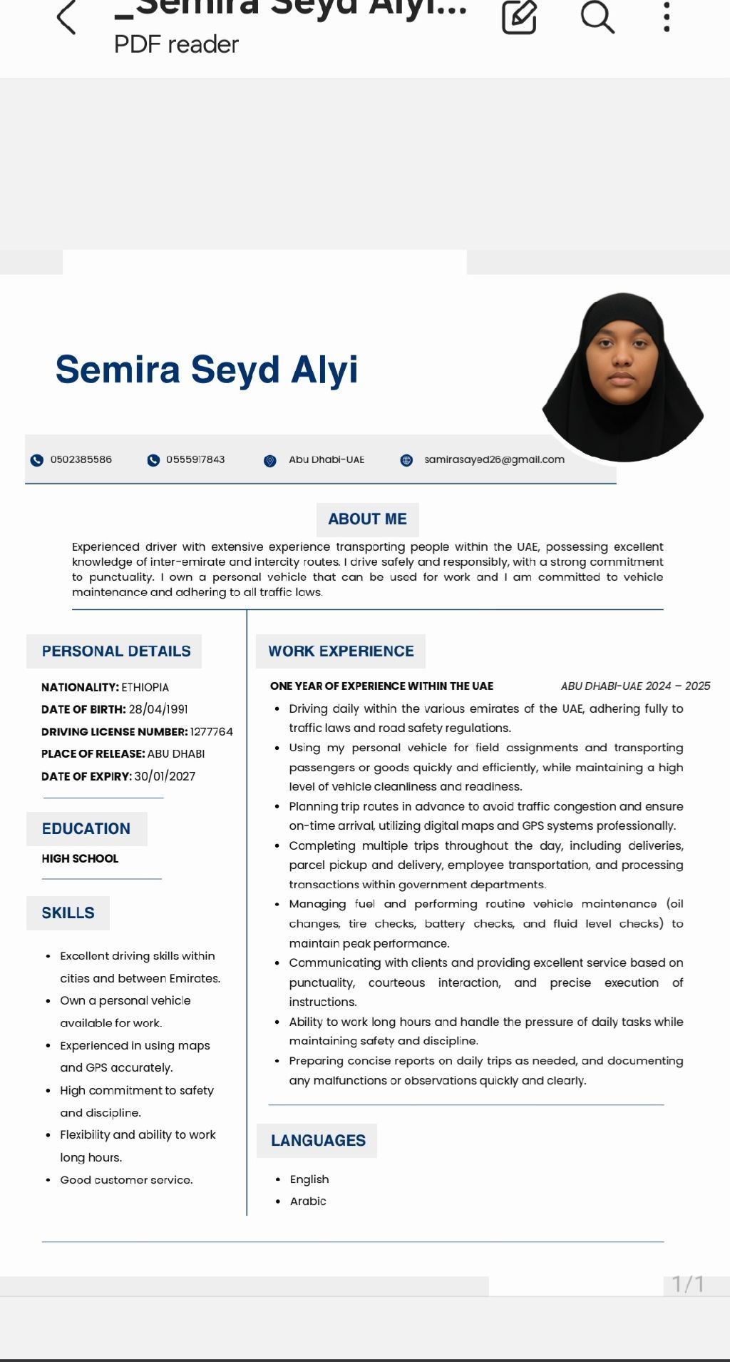 I am looking for job driver I am Lady driver have car and visa I live in Abu Dhabi