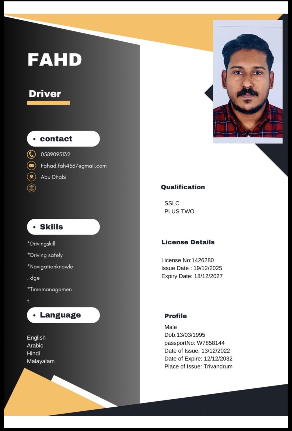 I am looking fore a driver job I have 1 year experience house Driver in Abu Dhabi, I know Arabic, English, Hindi, Malaya and I know all locations in Abu Dhabi