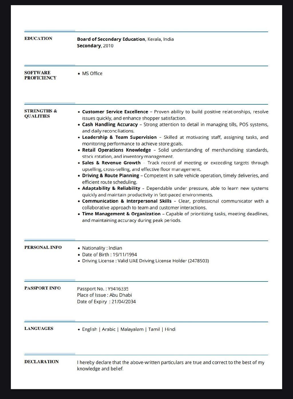 Looking for a driver job I have totally 10 years experience in Abu Dhabi then 2 year cashier experience then 8 years driver delivery experience call me if I am not responding contact me watsupp