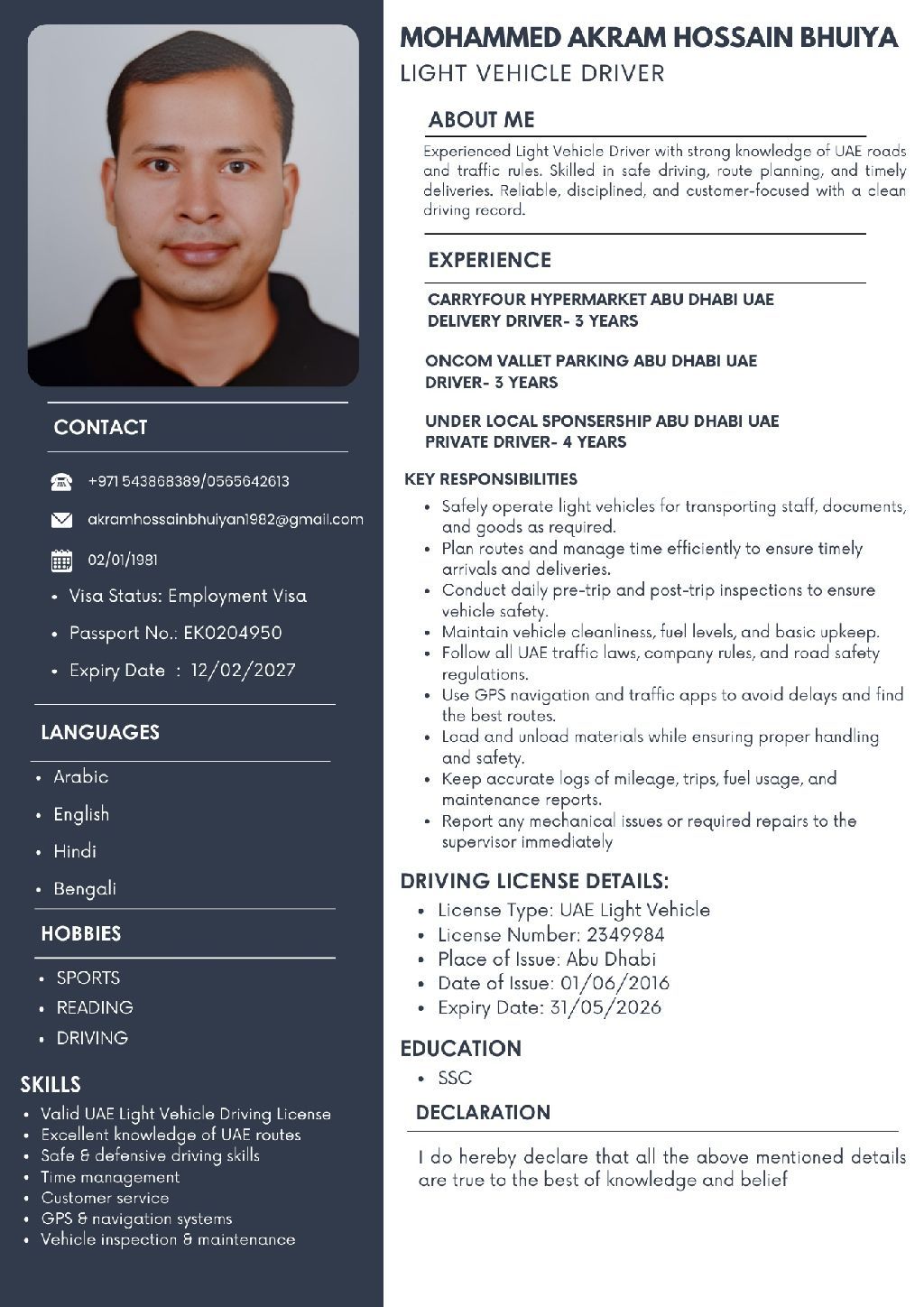 I am looking driving job I have experience for Abu Dhabi 10 years driving only Abu Dhabi
