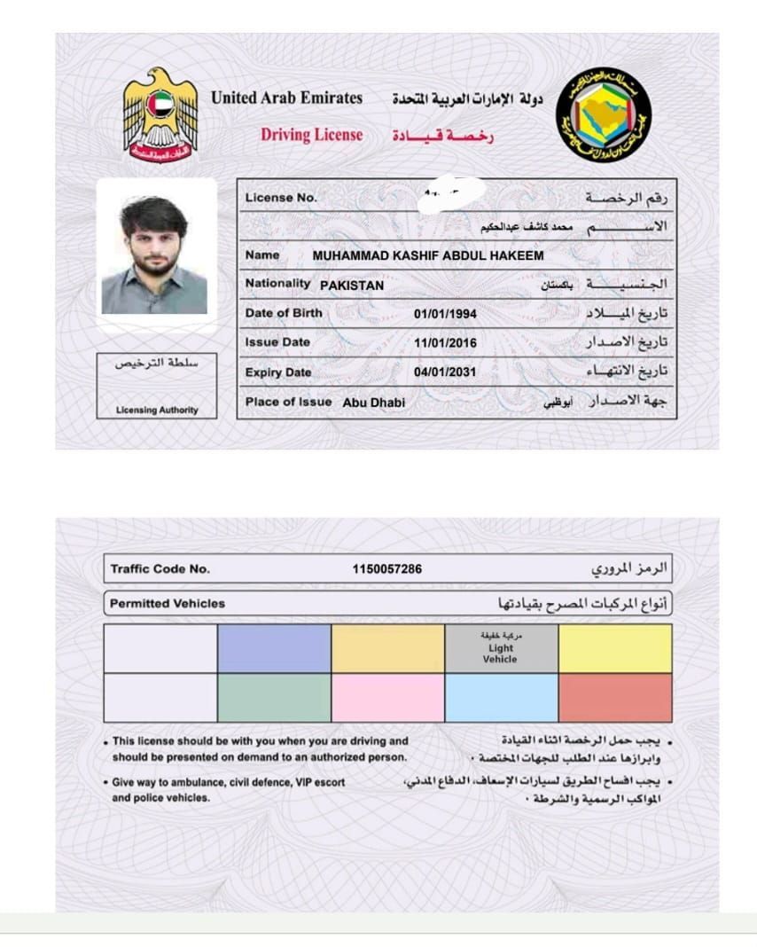 My name is Kashif, I am from Pakistan, and I am looking for a job as a light vehicle driver. I have ten years of experience, including six years working for a local family and 8 years for a company. I know all the roads in the UAE and am proficient in using Google Maps. I have a high school diploma and am fluent in English, Arabic, and Urdu. I have a valid residence visa