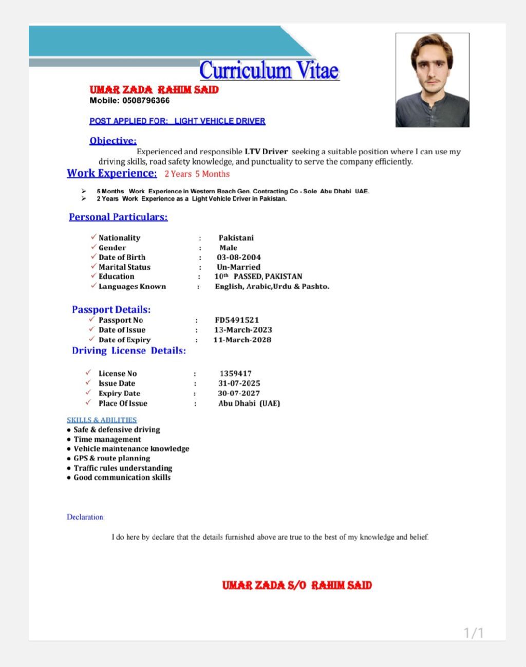 My name is umar I belong from pakistan I have 3 number license I am doing duty if anyone has dept pls tell me For five months I have driven in the buildings of Abu Dhabi