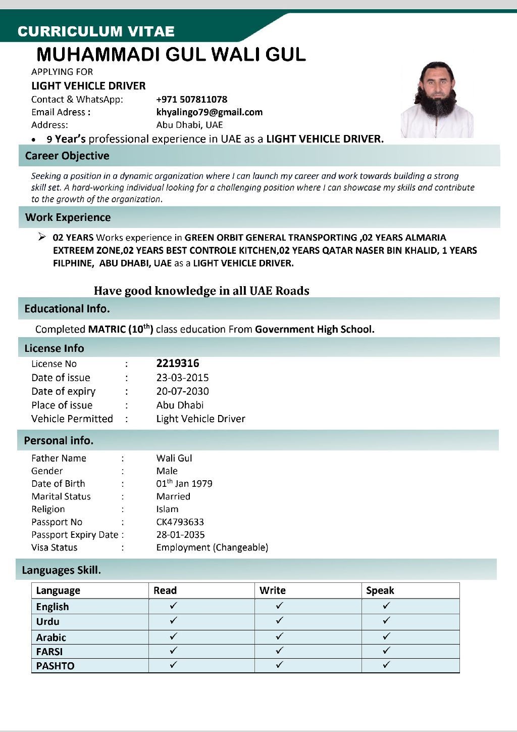 I have light vehicle driving license 10 years experience