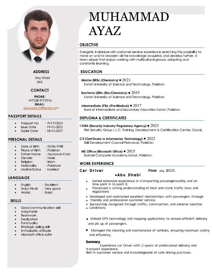 I am Muhammad Ayaz from Pakistan I am looking for a Driver job. I have 9 months of light vehicle driving experience in the UAE