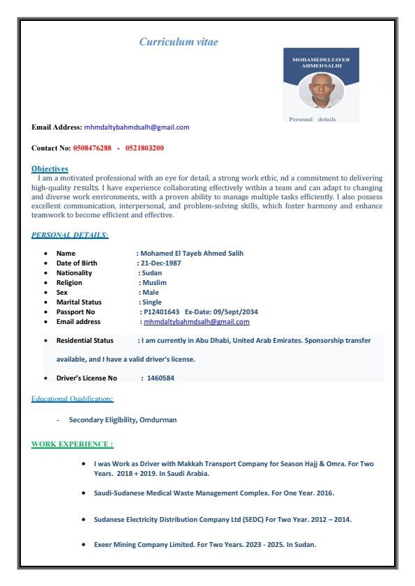 أنا سوداني ابحث عن عمل سائق متواجد في أبو ظبي في شركة لدي الخبرة في قياد الكانتر أو أي سيارة خفيفه