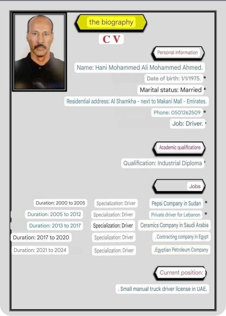 اسمي هاني سوداني الجنسية لدي ليسن اماراتي ولدي خبرة سنتين في شوارع أبوظبي ابحث عن عمل لدي اقامة كوارث