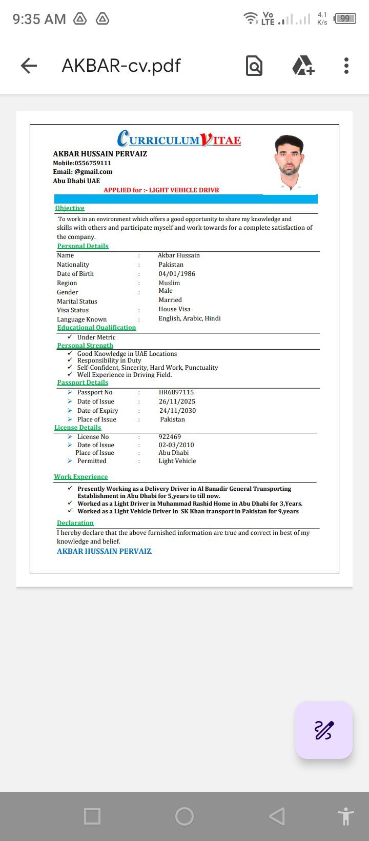 My name is akbar I am looking for light vehicle driver job I have 14 years experience in house driver in Abu Dhabi