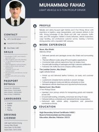 My name is Fahad Muhammad I am Pakistani national I have two years experience in Abu Dhabi in driving I have own visa and also have hybrid prius car if someone have job vacency I am available immediately