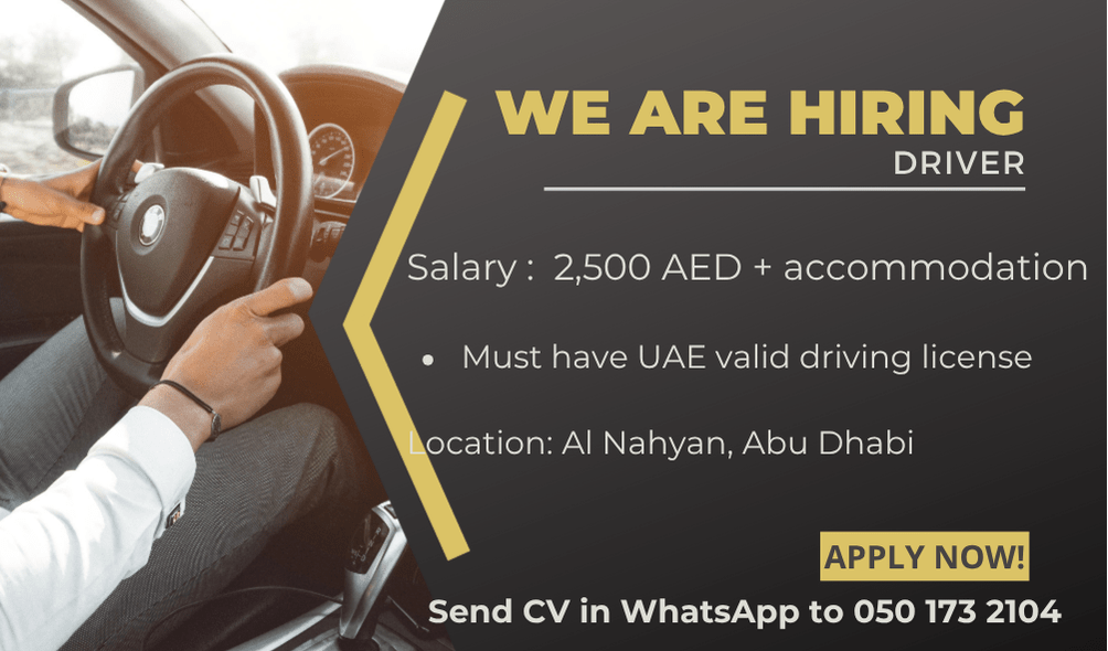 We are looking for company driver in Mussafah, Abu Dhabi. Salary - 2500 + Accommodation - Visa provided by Company - Medical Insurance Send your CV to