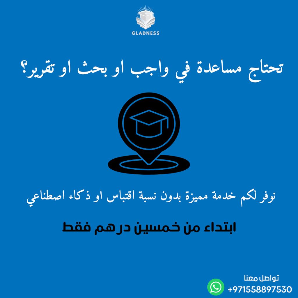 المساعدة في البحوث الجامعية / تقارير / بوربوينت / بروجكتات / اسايمنتس / واجبات / تلخيص / ترجمة / كيس ستدي / بحوث تخرج. رسائل ماجستير ودكتوراه بجودة عالية على يد دكاترة خبرة. لدينا طاقم متخصص في جميع التخصصات مع مراعاة نسبة الاقتباس