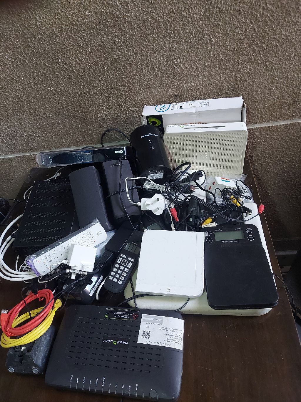 مجموعة الكترونيات رسيفرات تلفون راوتر كابلات سبيكر للبيع في أبو ظبي معسكر آل نهيان تواصل واتساب على رقم موجود