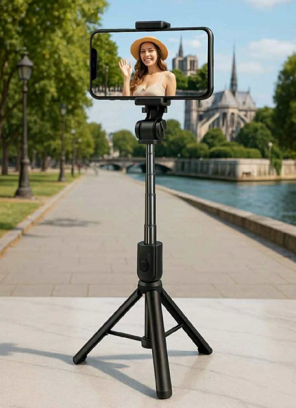 Wireless Selfie Stick Tripod - Extendable up to 67 inches (170 cm) this versatile selfie stick doubles as a tripod for stable photos and videos. Bluetooth - enabled for easy wireless control, perfect for selfies, vlogs, and group shots