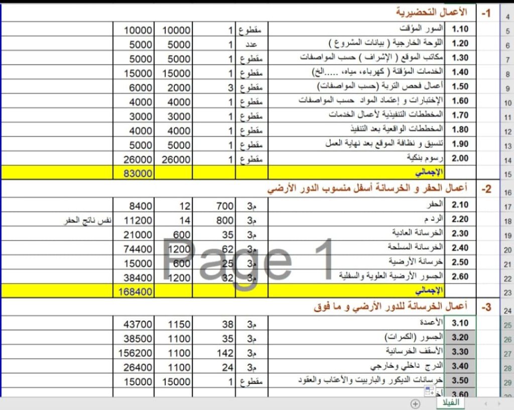 مهندس مدني للخدمات التالية، تسعير المشاريع مع ارفاق جدول كميات مفصل وعمل المستخلصات وحصر عناصر المبنى كاملا بداية من الحديد وحتى مواد التشطيب