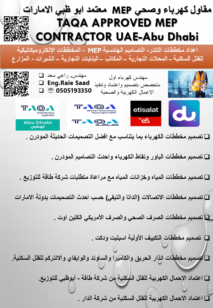 Electrical engineer available for electrical and plumbing services and adm addc adssc tra du drawing approval for engineering consultancies and construction work