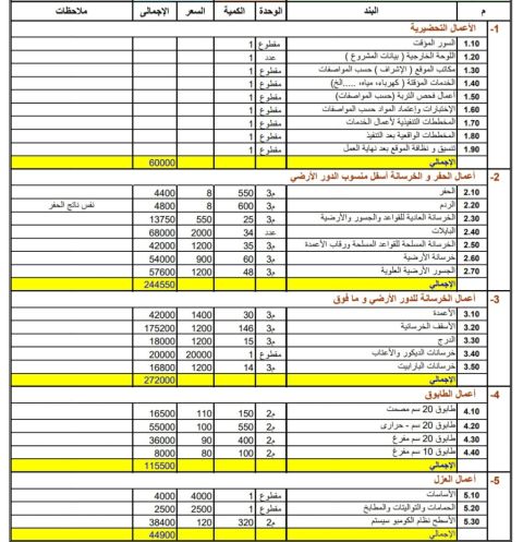 مهندس مدني للخدمات التالية، تسعير المشاريع مع ارفاق جدول كميات مفصل وعمل المستخلصات وحصر عناصر المبنى كاملا بداية من الحديد وحتى مواد التشطيب