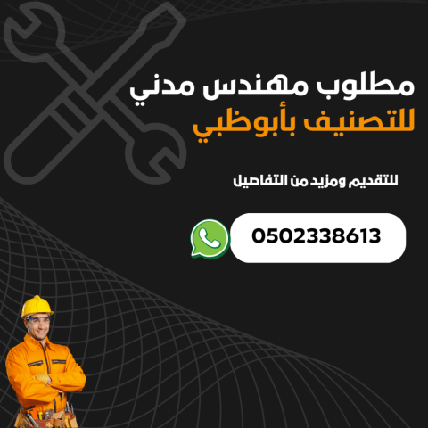 مطلوب على وجه السرعة مهندس مدني بغرض التصنيف في أبوظبي منطقة الخالدية