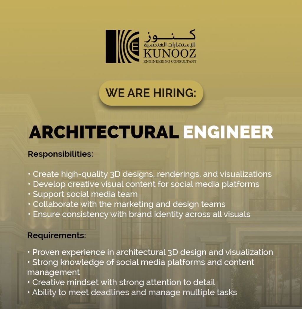 نحتاج الى مهندس / مهندسة معماري للتصميم الخارجي 3D ويجيد التعامل بال AI ونحتاج الى خبرة في مجال الميديا social media في مكتب استشارات هندسية في المرور أبوظبي