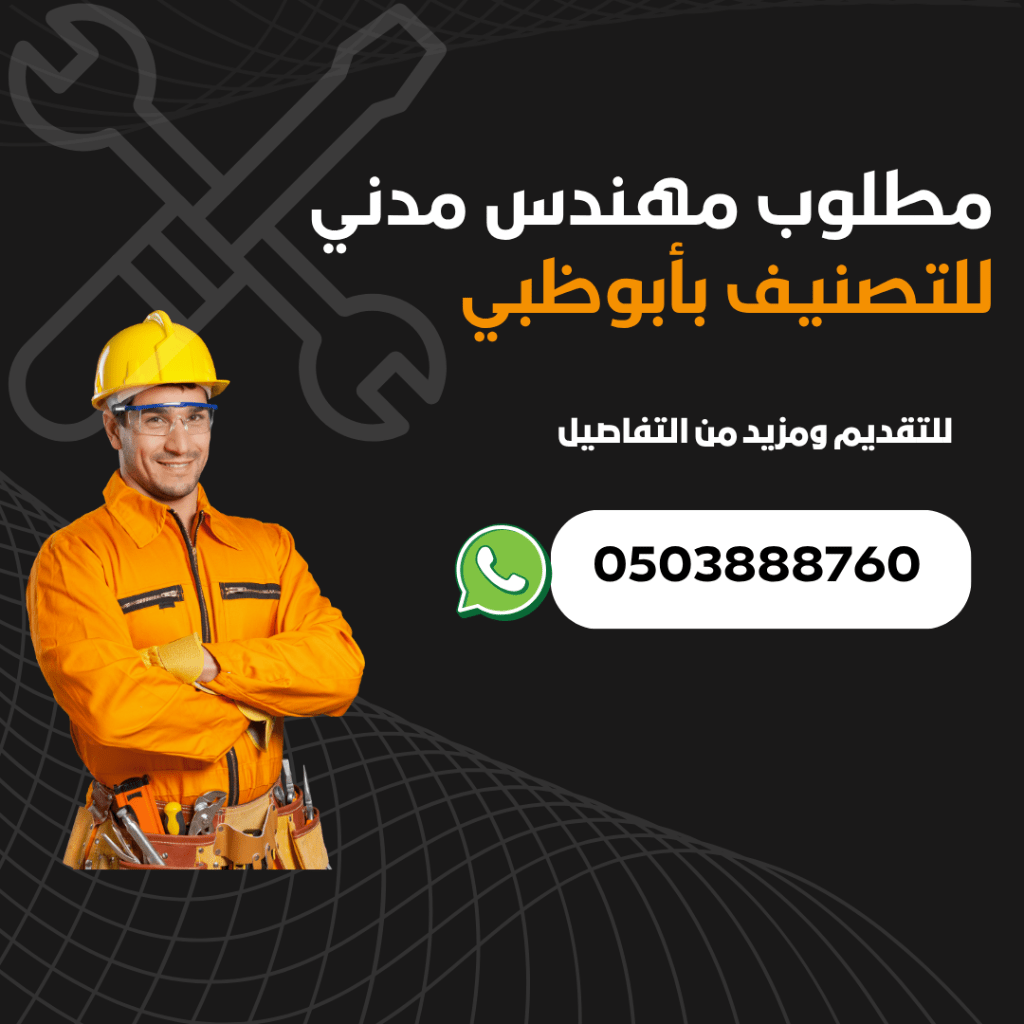 مطلوب مهندس أو مهندسة مدنية للتصنيف فقط - اعارة - لشركة مقاولات - أبوظبي، شارع الفلاح، منطقة الدانة - 4 سنوات خبرة - الرجاء التواصل