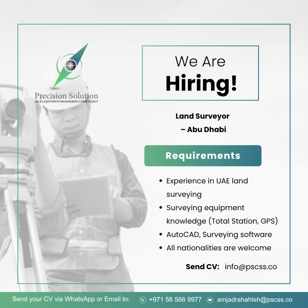 Experienced Land Surveyor in Abu Dhabi Mussafah Applicants should have a good background in surveying works. The applicant must have knowledge and experience with GPS Total Station AutoCAD Topography As - Built Levelling Demarcation Site Work Construction Survey Must be present in UAE. Must be available to join immediately. Please read the description carefully. If you don't have the right knowledge