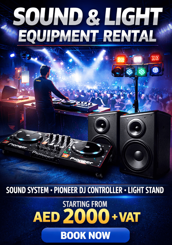 باقات الصوت والاضاءة ودي جي تبدأ من 2000 درهم هل تبحث عن تجهيزات احترافية لفعاليتك نقدم خدمات متكاملة تشمل الصوت والاضاءة والدي جي لجميع أنواع المناسبات حفلات الزفاف والخطوبة أعياد الميلاد والمناسبات الخاصة الفعاليات والشركات والمعارض أنظمة صوت عالية الجودة دي جي محترف اضاءة مسرح ومؤثرات شاشات LED وخلفيات متوفرة تركيب كامل ودعم فني الأسعار تبدأ من 2000 درهم متوفرين في جميع أنحاء الامارات تواصل معنا
