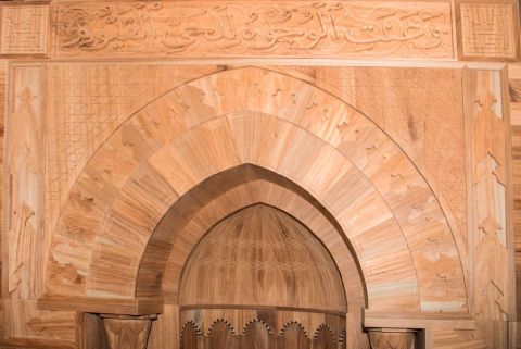 قبلة مسجد مصنوعة من الخشب الطبيعي بالكامل صناعة يدوية جاهزة على التركيب ونقوم بتصنيع المنابر وأبواب وشباك المساجد