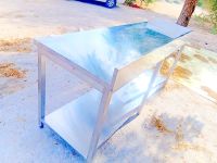 Full Stainless Steel Long Tables with Lower Shelf & Middle Support - 6 Feet Adjustable Sizes 1 200 cm x 70cm x 90cm Adjustable height + Lower shelf 2 175 cm x 70cm x 90cm Adjustable height + Lower shelf
