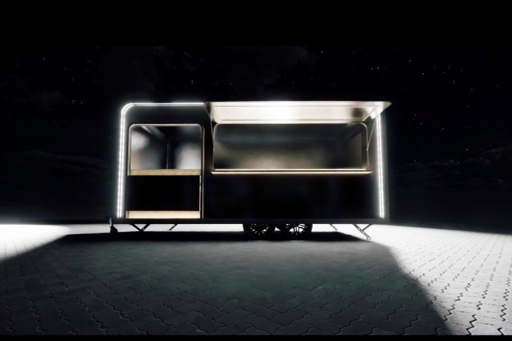 New food truck for sale in distinctive colors and a modern design. Contact via
